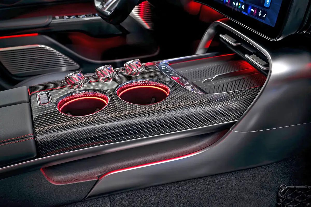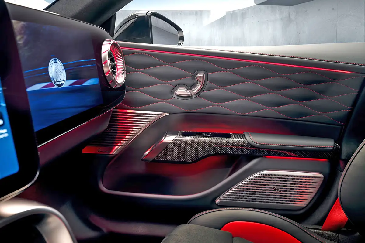 A medley of all these vulgar ideas in interior designs we have seen in the past few years. the quilted leather finish. The carbon fiber everywhere. The overdose of red ambient lighting, again, everywhere. Shiny stuff all over the place. It’s all there. A sad and terrible display of wannabe luxury. From a brand that should know better…